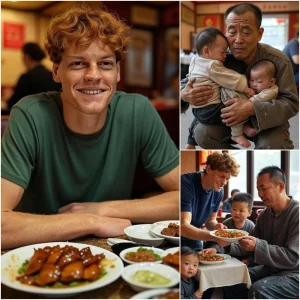 “Excuse me, sir… may I have the leftover food?”The entire Jingshan restaurant fell silent. Jannik Sinner turned around. A man was kneeling beside Sinner’s table, drenched from the rain. His…