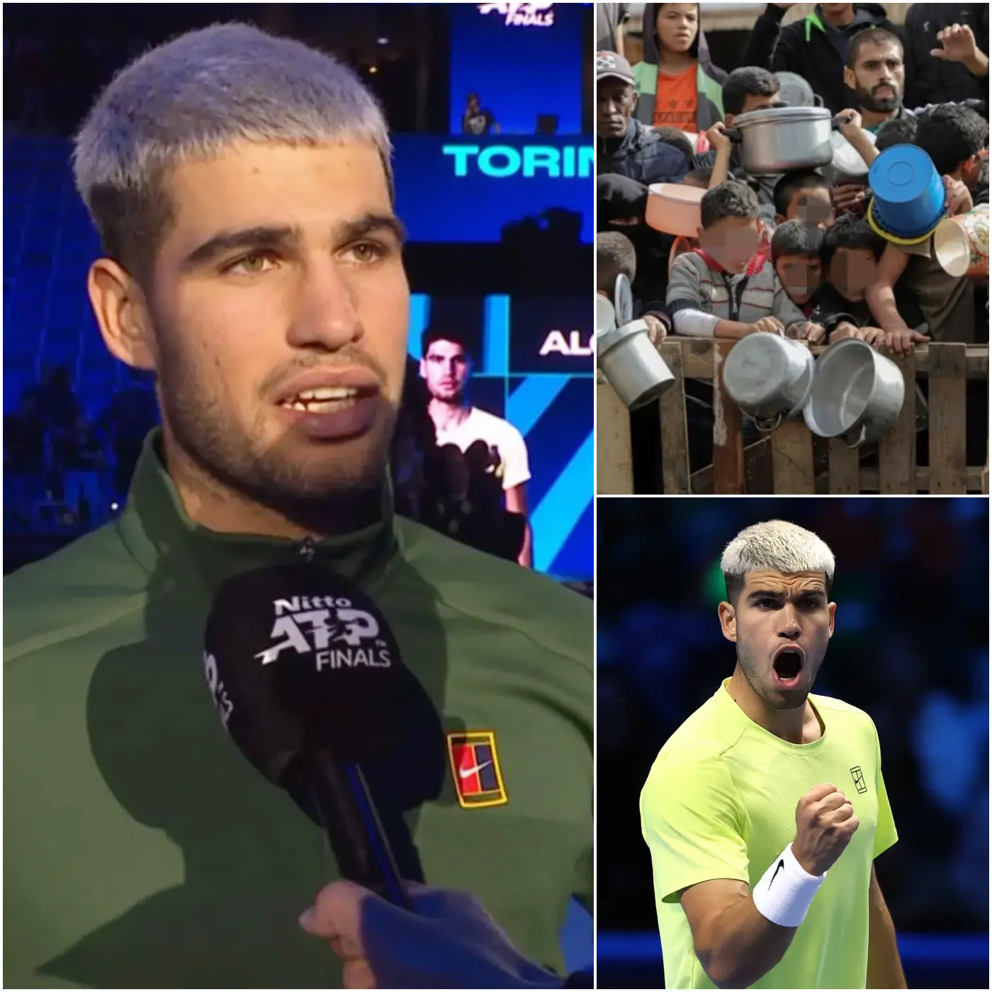 Carlos Alcaraz, la joven estrella española del tenis, ha capturado la atención de millones de aficionados en todo el mundo no solo por su talento excepcional en la pista, sino también por su corazón y compromiso con causas humanitarias. Antes de la tan esperada final del ATP Finals 2025, Alcaraz sorprendió a los medios con una declaración que rápidamente se volvió viral: prometió donar el 100% de su premio en caso de victoria para apoyar a los niños afectados por la guerra en la Franja de Gaza.