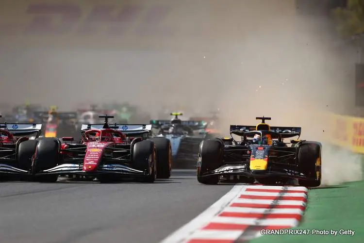 Verstappen klaagde ondertussen via de radio dat hij “als een gek” in bocht 1 werd geperst. De dichte groep – Norris, Leclerc, Hamilton en hijzelf – vormde een kruitvat, waarbij Verstappens gewaagde binnenlijn de aanleiding vormde voor de uitstap buiten de baan.