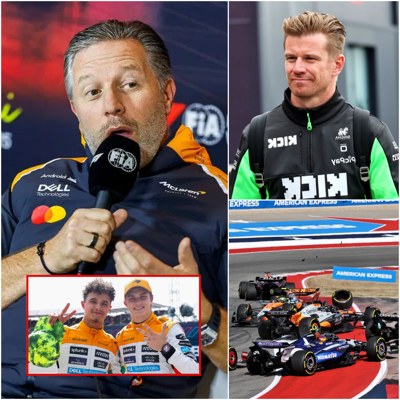 Brown, connu pour sa protection envers ses pilotes, n’a pas hésité à les défendre. Immédiatement après la course, il a souligné que Piastri et Norris avaient suivi les consignes de l’équipe et laissé suffisamment de marge pour une course impeccable. « Il était clair, d’après les images », a-t-il déclaré, « qu’Oscar n’avait rien fait de mal. Hülkenberg est simplement arrivé trop fort et l’a éliminé. C’est extrêmement frustrant, car nos deux voitures étaient en position de force. » Ses commentaires ont alimenté une atmosphère déjà tendue, les fans se divisant rapidement en deux camps : ceux qui soutenaient la position de McLaren et ceux qui estimaient que les actions de Hülkenberg s’inscrivaient dans le caractère imprévisible des courses serrées.