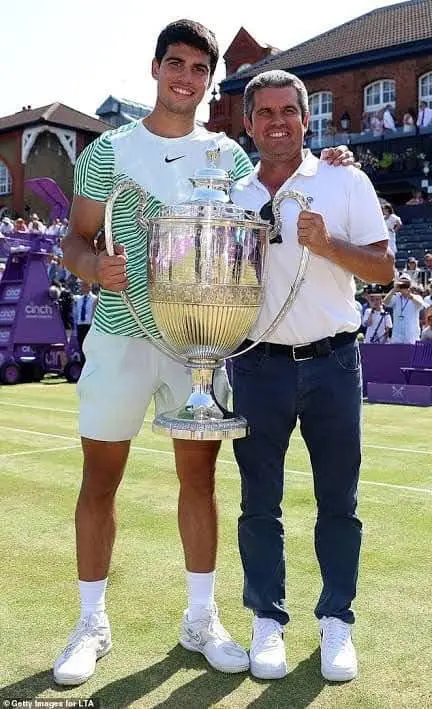 La escena se desarrolló ante una audiencia atónita. Con la voz temblorosa y los ojos llenos de lágrimas, Alcaraz mostró un lado vulnerable que rara vez se ve en la élite del tenis. Su expresión revelaba no solo la frustración por la derrota, sino también un profundo amor y respeto hacia su padre, que lo acompañó durante toda su carrera.