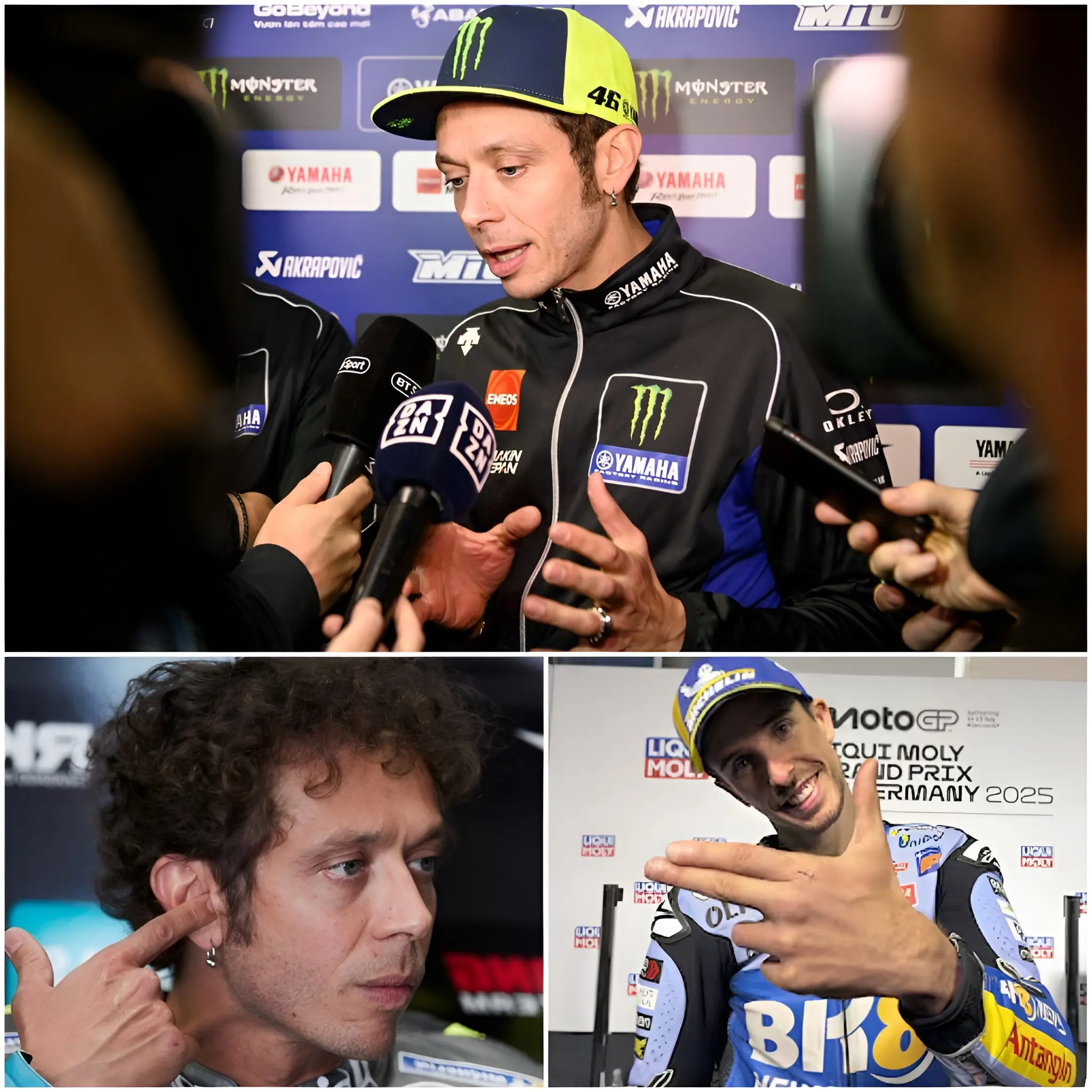 Stille breitete sich im Panel aus – ein seltener Moment im sonst so turbulenten MotoGP-Medienzirkus. Die Co-Moderatoren und Fahrerkollegen wie Francesco Bagnaia und Luca Marini tauschten ungläubige Blicke. Dann die Bombe: Rossi legte mit einer schonungslosen Wahrheit nach: „Du hast noch nie ein Rennen ohne Marcs Schatten gewonnen, Alex. Zeit, die Fesseln zu kappen und dein eigenes Motorrad zu fahren.“ Dieser harte Realitätscheck, vorgetragen mit Rossis typischem Grinsen, verstärkte den Schock und unterstrich Alex’ Karrierebilanz: acht Podiumsplätze, aber kein Solosieg gegen die Top-Konkurrenz.