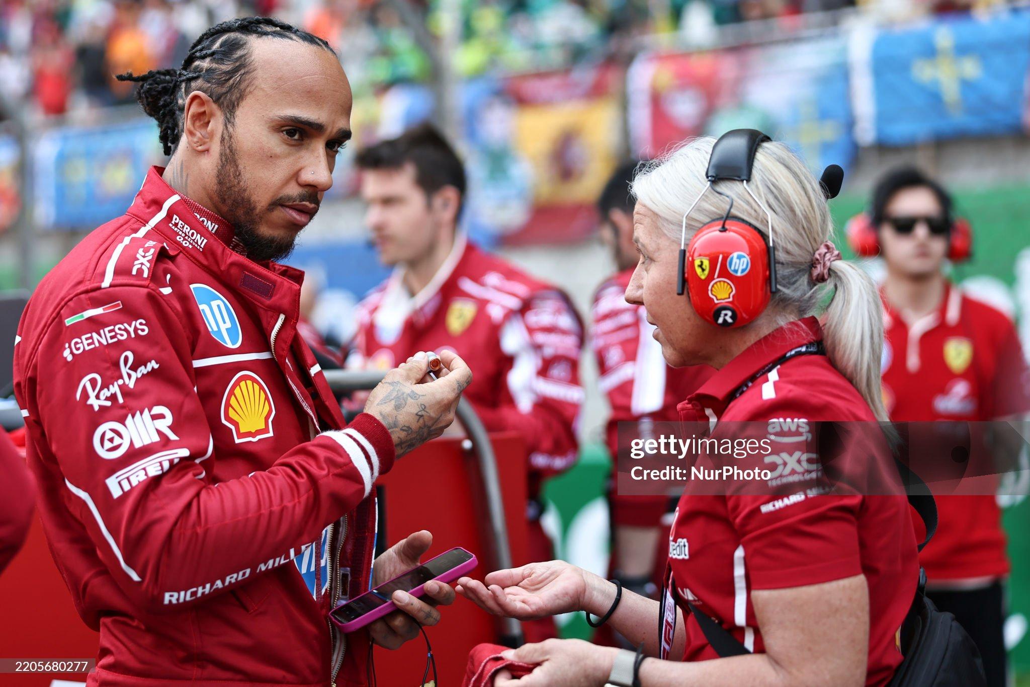 In de moordende wereld van de Formule 1, waar de felle schijnwerpers zowel triomfen als zwakheden onthullen, krijgt zevenvoudig wereldkampioen Lewis Hamilton niet alleen te maken met concurrentie op het circuit, maar ook met een giftige golf van haat, zowel online als offline. Het was in deze gespannen context, aan de vooravond van zijn nieuwe avontuur met Ferrari in 2025, dat Angela Cullen, zijn vertrouwde fysiotherapeut en vertrouwelinge, instortte tijdens een geïmproviseerde persconferentie in Maranello. Haar ogen kleurden rood van de tranen en de 45-jarige Nieuw-Zeelander, die in 2023 na een pijnlijke scheiding terugkeerde naar Hamiltons zijde, deed een hartverscheurende smeekbede: “Stop alsjeblieft, ik smeek je!” De woorden, uitgesproken met een gebroken stem, resoneerden als een hartekreet en legden de duistere kant van een beroemdheid onder druk bloot.